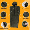 - Dilengkapi dengan 2 zipper dibagian kiri dan kanan, 1 zipper dibagian depan, serta ada tali serut dibagian bawah sleeping bag dan dibagian penutup kepala/kupluk