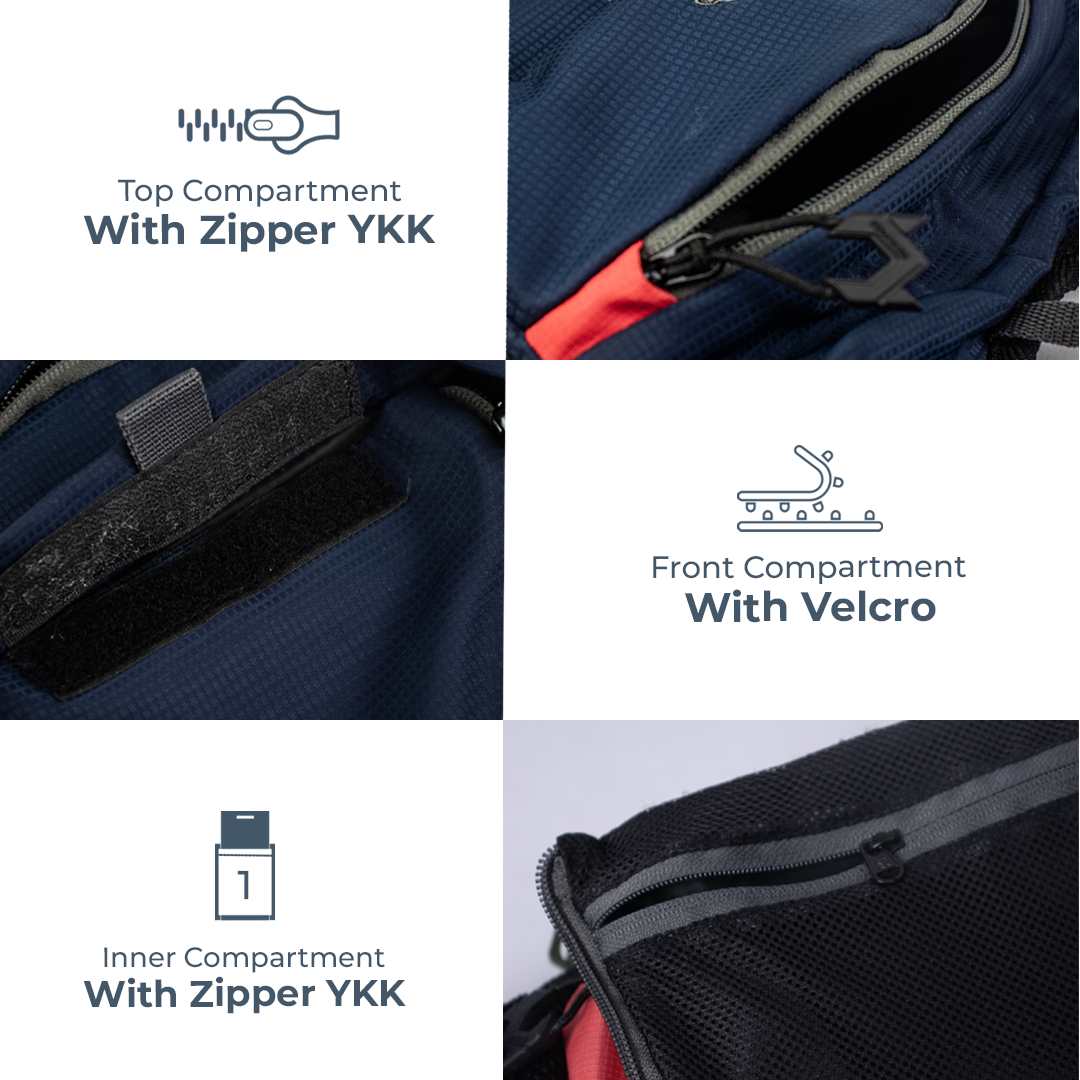 - 1 Slot dengan Zipper dibagian tali Punggung (Muat HP 6,5 Inch)